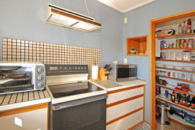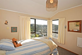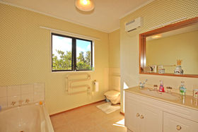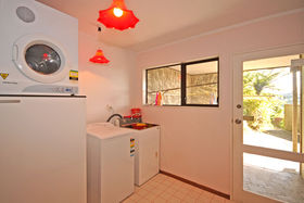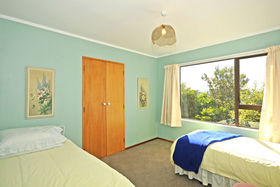 Downstairs bathed in sun two double bedrooms, plus study/ hobby room laundry and full bathroom.