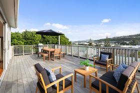 This enchanting three-bedroom home has been sublimely renovated for modern living on a sunny 810sqm* section with picturesque outdoor living. Perfect as it is or for capitalising on its private setting and prime location just minutes from everything that makes Miramar hum. Features include: - Stunning entertainers' kitchen with premium appliances and open-plan living/dining - the social hub of the home - Superbly set-up for an easy-care al fresco lifestyle, with seamless indoor-outdoor flow to a broad, spacious, sunny deck - West-facing for the last of the sun - Highly specified throughout, with polished matai floorboards, stylish art deco ceilings, and underfloor heating in the bathroom - Fantastic attic and under-house storage plus bonus of separate laundry - Private driveway with ample off-street parking and security of garage/workshop If you're a professional, couple, young family or wanting to downsize without compromise, don't miss Sunday's viewing! (*Source: Property Guru)