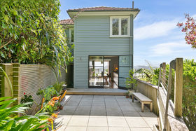 Set back from the street in an elevated position, this standalone 1940s home offers privacy, views, and a practical two-level layout that works well day-to-day. Living is downstairs, bedrooms are up, and the renovated kitchen and dining area gives the home a clear functional edge without losing its character.